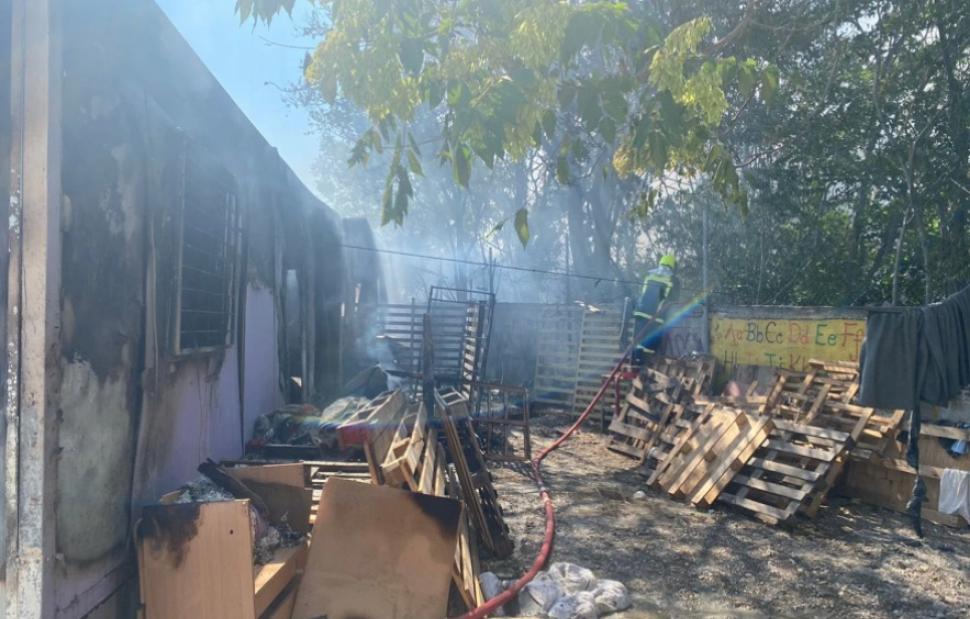 Η φωτιά που ξέσπασε το πρωί στη δομή φιλοξενίας προσφύγων, σύμφωνα με την Πυροσβεστική έκαψε τρία κοντέινερ ολοσχερώς καθώς και το μισό μέρος από ένα ακόμη κοντέινερ.