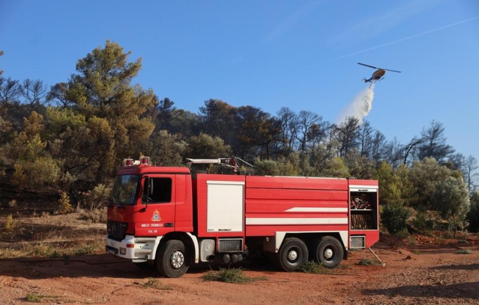 Κινητοποιήθηκαν 35 πυροσβέστες με 9 οχήματα, 2 ομάδες πεζοπόρων της 7ης ΕΜΟΔΕ, 1 ελικόπτερο και 3 αεροσκάφη.