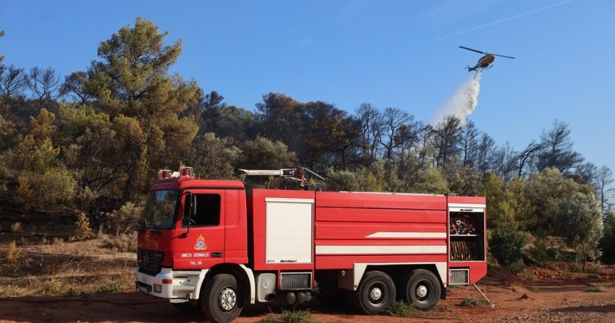 Σύμφωνα με την Πυροσβεστική, η φωτιά καίει σε δύσβατο σημείο, ενώ, δεν απειλούνται κατοικημένες περιοχές.