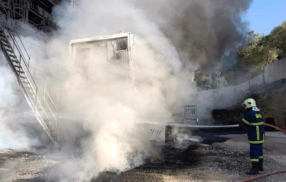 Η φωτιά εκδηλώθηκε λίγο πριν τις 08:00 σε εργοτάξιο όπου παράγεται πίσσα, με πυκνούς καπνούς να είναι ορατοί από μεγάλη απόσταση.