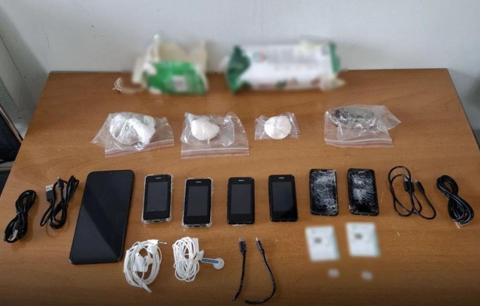 Ακόμα, από σωφρονιστικούς υπαλλήλους, σε αίθριο χώρο, βρέθηκαν και κατασχέθηκαν 4 αυτοσχέδια δέματα (συσκευασία καπνού, σακούλα και δύο συσκευασίες κουτιών γάλακτος) που περιείχαν συνολικά: