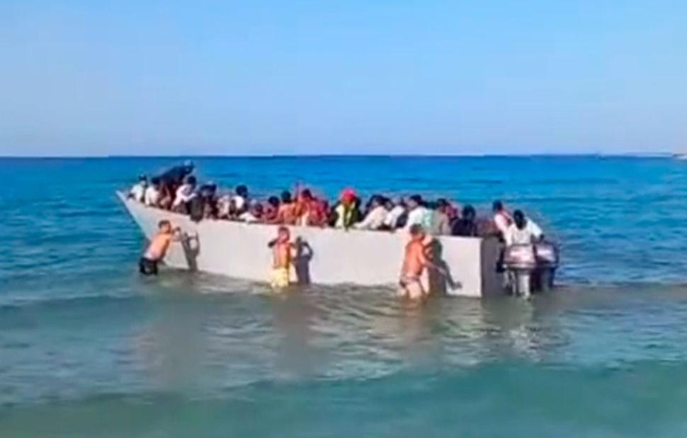 Όπως φαίνεται στο βίντεο που αναρτήθηκε στο TikTok, λουόμενοι που ήταν στην παραλία μπήκαν στο νερό και με τα χέρια τους απώθησαν προς τα ανοιχτά τη γεμάτη με παράνομους μετανάστες βάρκα που επιχείρησε να προσεγγίσει την ξηρά.