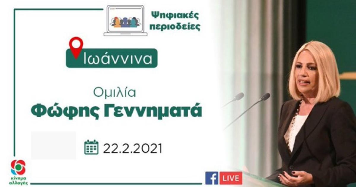 Γι’ αυτό συγκροτούμε ένα ευρύ μέτωπο στην κοινωνία, μια νέα Κοινωνική Συμφωνία που θα εγγυηθεί ότι οι συντηρητικές πολιτικές δεν θα κυριαρχήσουν, ότι μια Προοδευτική Διακυβέρνηση είναι όχι μόνο όραμα, αλλά το αίτημα των προοδευτικών πολιτών για μια νέα Αλλαγή στην Ελλάδα», υπογράμμισε η πρόεδρος του Κινήματος Αλλαγής.