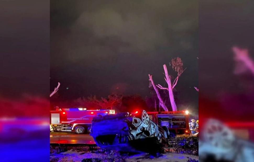 Στο αυτοκίνητο επέβαιναν τρία άτομα, τα οποία γλίτωσαν από θαύμα, καθώς πρόλαβαν να το εγκαταλείψουν λίγο πριν ξεσπάσει η πυρκαγιά. Στο σημείο του τροχαίου, που σημειώθηκε κοντά στην Γλυφάδα, έσπευσαν δυνάμεις της Πυροσβεστικής, της Αστυνομίας και του ΕΚΑΒ.