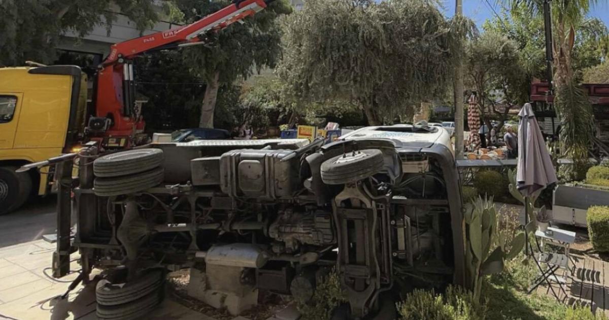 Τροχαίο ατύχημα έγινε το μεσημέρι όταν γερανοφόρο όχημα ανετράπη υπό αδιευκρίνιστες μέχρι στιγμής συνθήκες και προσέκρουσε σε καφετέρια επί της οδού Φοίβης στη Γλυφάδα.