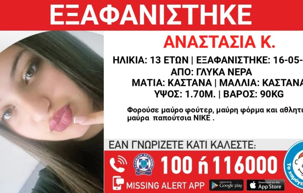 Συναγερμός σήμανε στα Γλυκά Νερά για την εξαφάνιση της 13χρονης Αναστασίας Κ., στις 16 Μαΐου 2024, βραδινές ώρες.