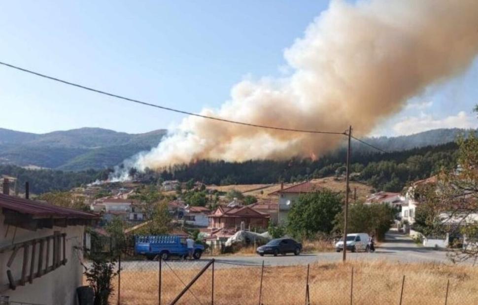 Η φωτιά είναι κοντά σε σπίτια ωστόσο μέχρι τώρα δεν απειλούνται, σύμφωνα με την Πυροσβεστική καθώς δεν πνέουν άνεμοι στην περιοχή.