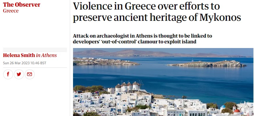Θέμα στον Guardian έγινε η κατάσταση στη Μύκονο, έπειτα από τον ξυλοδαρμό του αρχαιολόγου της Εφορείας Αρχαιοτήτων Κυκλάδων.