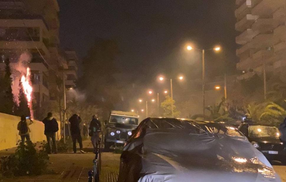 Οπως αναφέρεται, περίπου 400 κουκουλοφόροι στη συνέχεια πλησίασαν «τον αστυνομικό φραγμό προ του Τμήματος, και κρατώντας στα χέρια τους μολότοφ, φωτοβολίδες, καπνογόνα, καδρόνια, μπετόβεργες και άλλα αντικείμενα ανέπτυξαν ταχύτητα και επιτέθηκαν με σφοδρότητα στις αστυνομικές δυνάμεις. Οι αστυνομικές δυνάμεις, κάνοντας χρήση των αναγκαίων μέσων, τους απέκρουσαν».