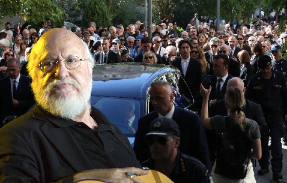 Πλήθος κόσμου συγκεντρώθηκε από το πρωί στο παρεκκλήσι της Μητρόπολης για να αποχαιρετίσει με ένα λουλούδι, με ένα δάκρυ, με ένα νεύμα, με ένα χαμηλόφωνο κατευόδιο, τον άνθρωπο που συντρόφευσε με το μουσικό του όραμα αναμνήσεις, προσωπικές και συλλογικές.