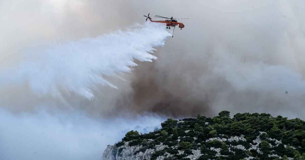Στα μέτωπα της φωτιάς επιχειρούν από αέρος 9 ελικόπτερα, εκ των οποίων ένα για συντονισμό, και 8 αεροσκάφη: 4 τράκτορες από Ελλάδα, δύο από Γερμανία και 2 Canadair.