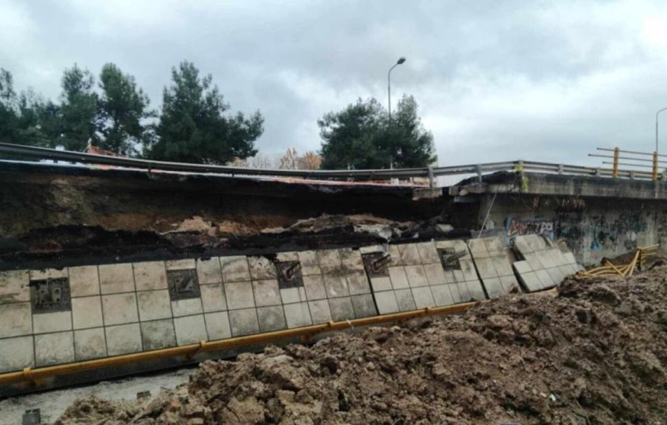 Υποχώρησε τα ξημερώματα εξαιτίας της έντονης και συνεχούς βροχής, τμήμα από το παράπλευρο τοιχίο του επιχώματος της γέφυρας Δενδροποτάμου στη Θεσσαλονίκη, η οποία συνδέει τον κόμβο του ΚΤΕΛ Μακεδονίας με την Λεωφόρο Δενδροποτάμου.