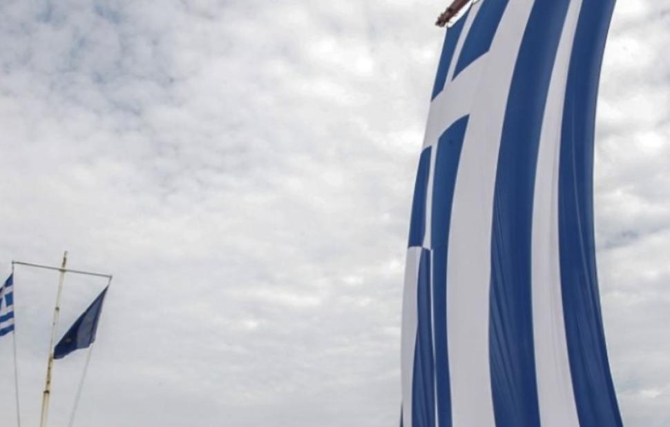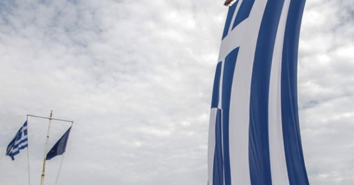 Η μεγαλύτερη ελληνική σημαία στον κόσμο, μεγέθους 1.500 τ.μ., υψώθηκε πάνω από τη λίμνη Πλαστήρα, με φόντο τα κεντρικά θεσσαλικά Άγραφα.
