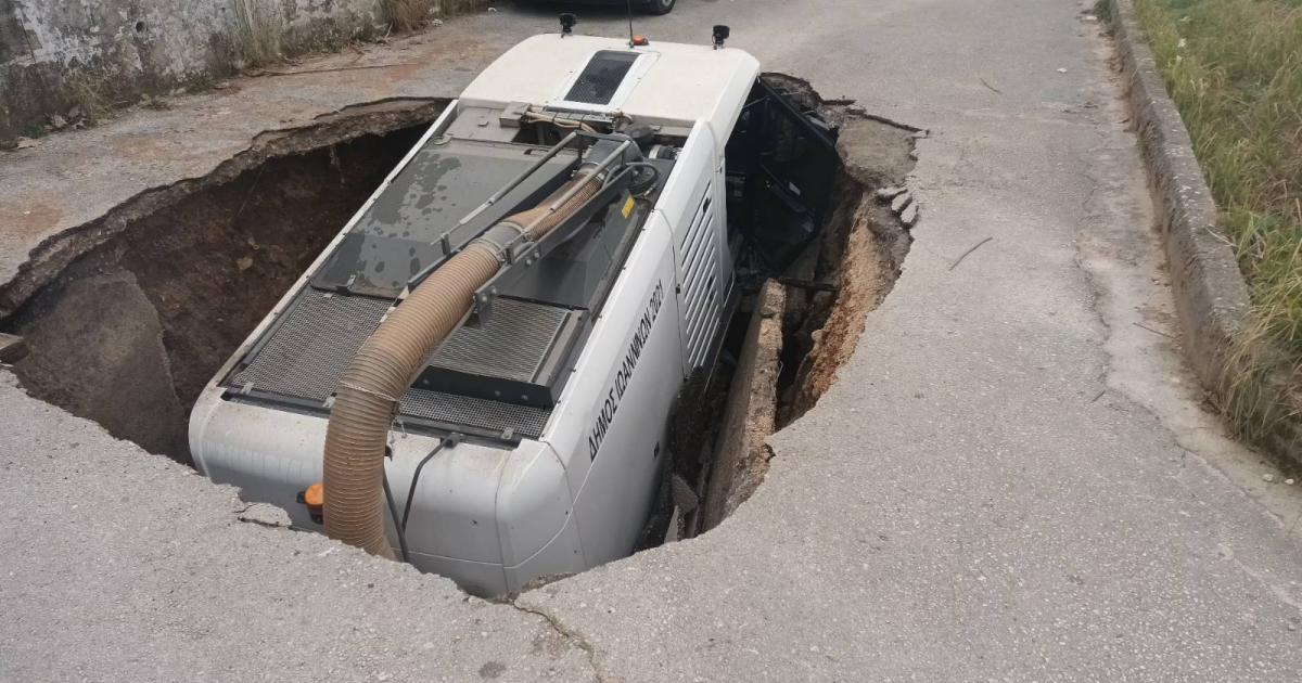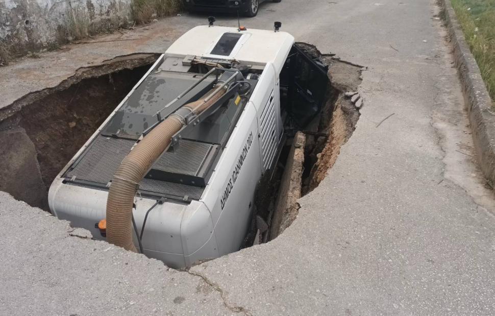 Την τύχη με το μέρος του είχε οδηγός απορριματοφόρου του δήμου Ιωαννίνων, καθώς έμεινε αλώβητος όταν δρόμος «ρούφηξε» το μηχάνημα την ώρα που καθάριζε το οδόστρωμα.