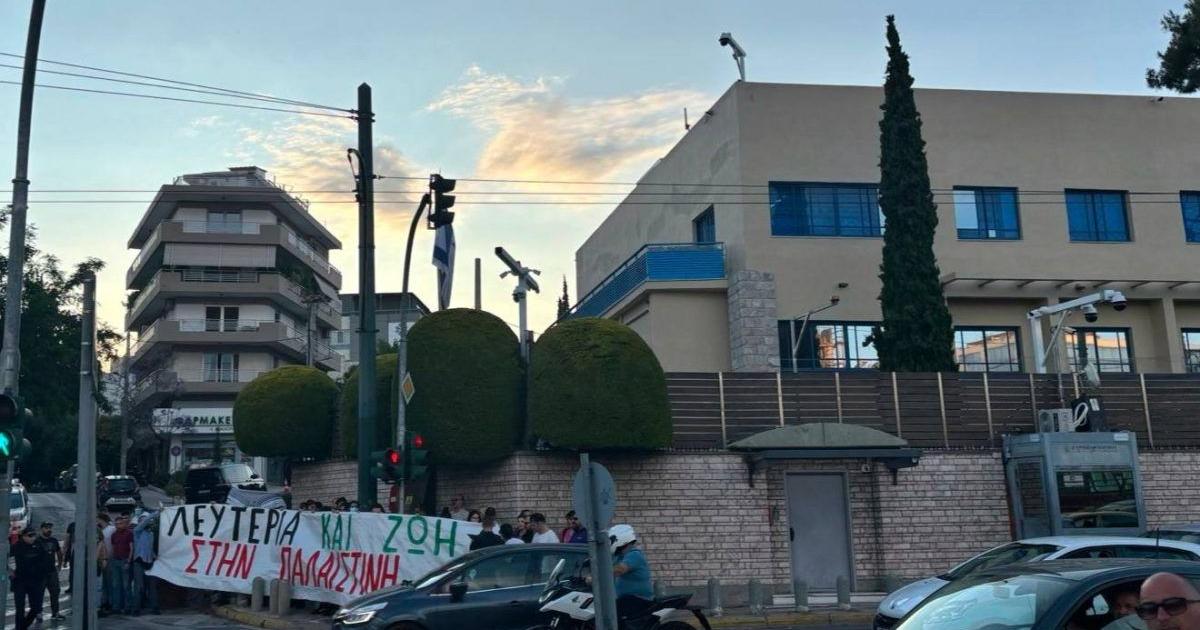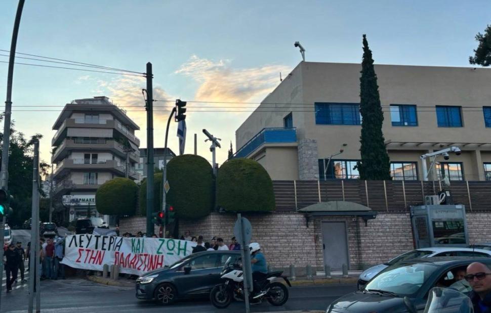Ο Ρουβίκωνας προχώρησε σε παρέμβαση στην πρεσβεία του Ισραήλ στην Αθήνα, καταγγέλλοντας τη «γενοκτονία» στη Γάζα.