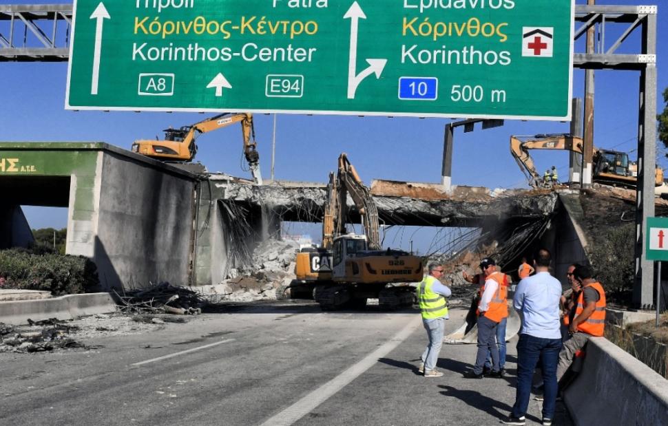 Μέχρι την Τετάρτη αναμένεται ότι θα διαρκέσουν οι εργασίες κατεδάφισης της γέφυρας στον Ισθμό που υπέστη ζημιές από την ανατροπή και την έκρηξη του βυτιοφόρου, το βράδυ της Παρασκευής, όπως και η απομάκρυνση των μπαζών από το σημείο.