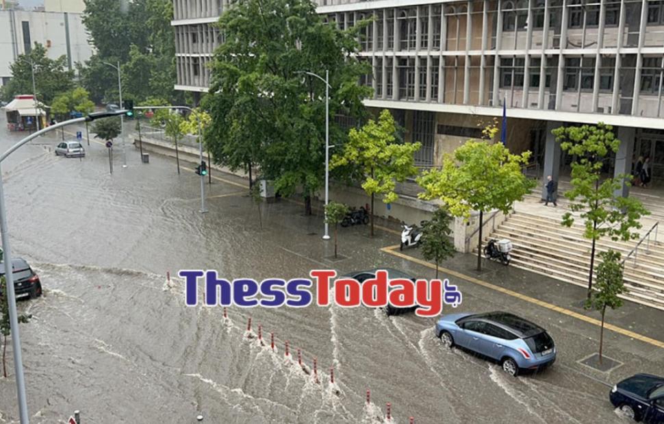 Καταιγίδα που συνοδεύτηκε και από χαλάζι, έπληξε λίγο μετά τις 4 το απόγευμα της Πέμπτης τη Θεσσαλονίκη.
