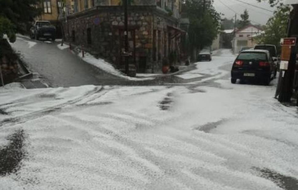 Η ξαφνική καταιγίδα συνοδεύτηκε από έντονη χαλαζόπτωση, σε ορισμένες περιπτώσεις, όπως οι Καρυές και η ευρύτερη περιοχή που βρέθηκαν στο επίκεντρο, η Σελλασία, οι Βουτιάνοι κ.α., δημιουργώντας συνθήκες που θυμίζουν φθινόπωρο, σύμφωνα με το lakonikos.gr.