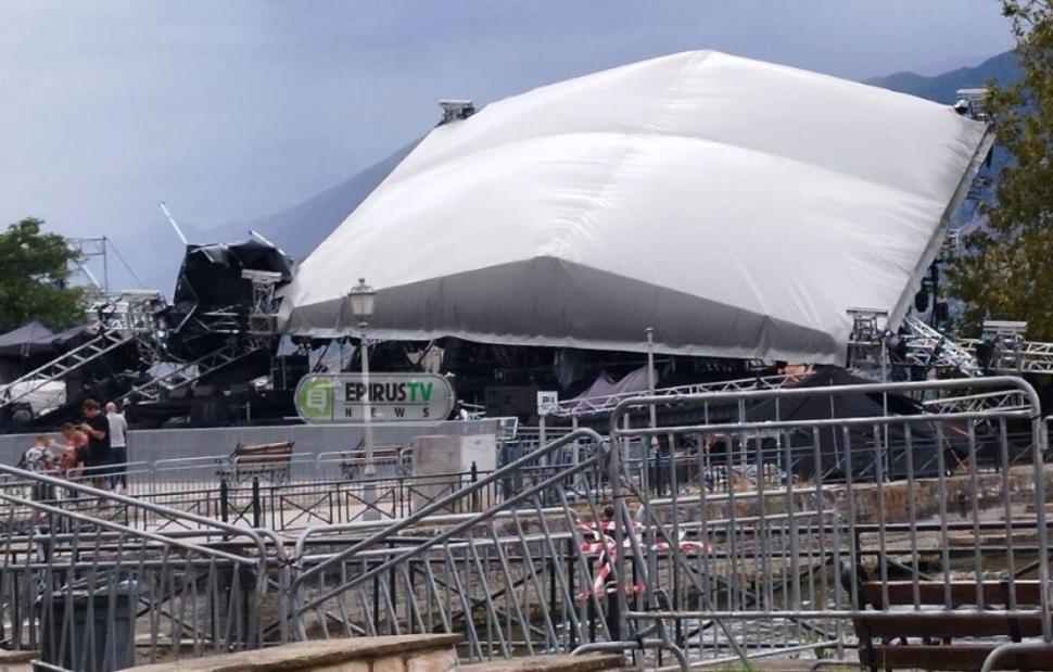 Οι δυνατοί άνεμοι που πνέουν σήμερα στα Ιωάννινα είχαν ως αποτέλεσμα να καταρρεύσει τμήμα της σκηνής που έχει στηθεί στην πλατεία Μαβίλη για την αποψινή συναυλία με Άννα Βίσση, Αντώνη Ρέμο και Μέλισσες.