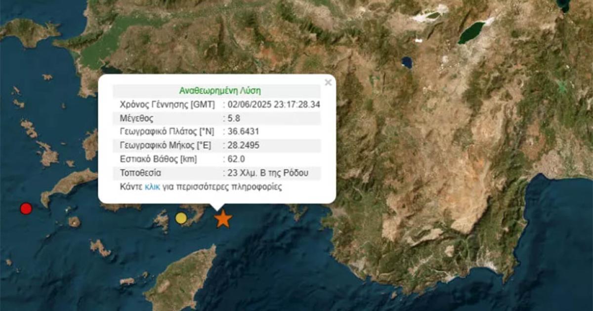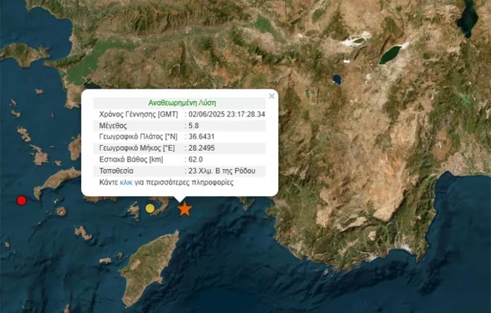 Ανησυχία προκάλεσε στους κατοίκους της Ρόδου ο σεισμός των 5,8 Ρίχτερ ανοιχτά του νησιού τα ξημερώματα της Τρίτης.