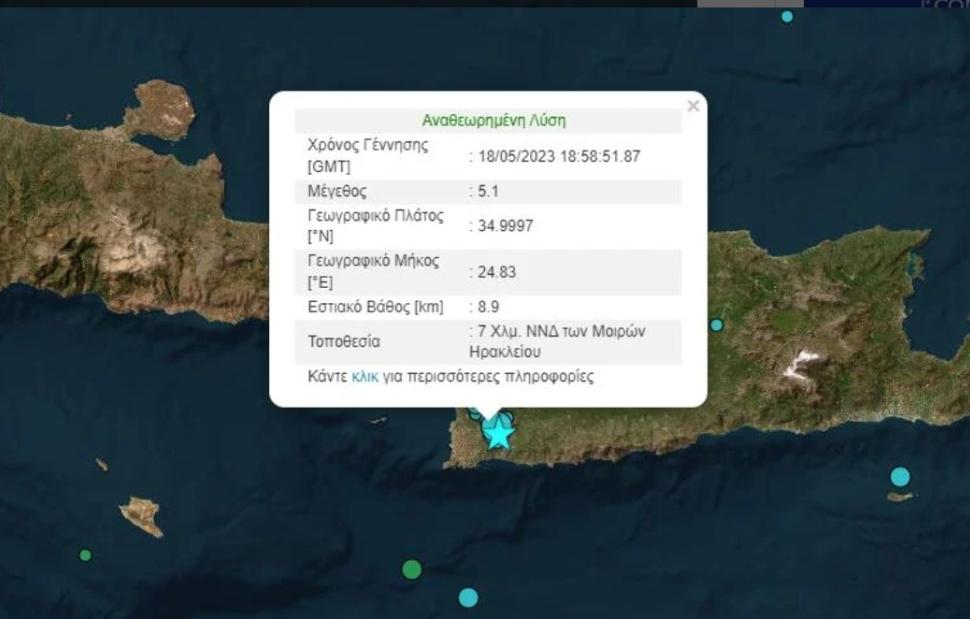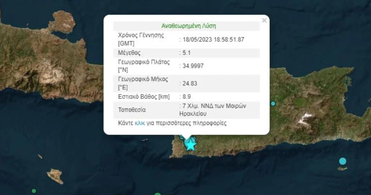 Ισχυρός σεισμός 5,1 βαθμών της κλίμακας Ρίχτερ σημειώθηκε πριν από λίγη ώρα στην Κρήτη.