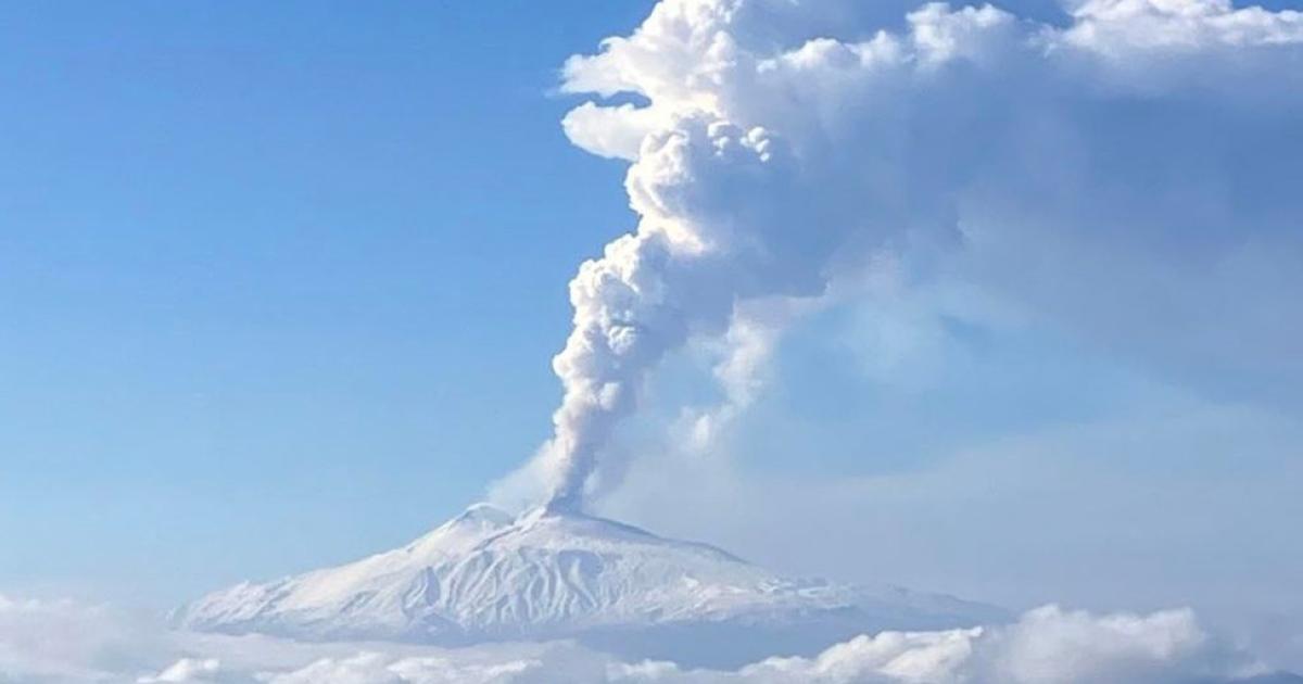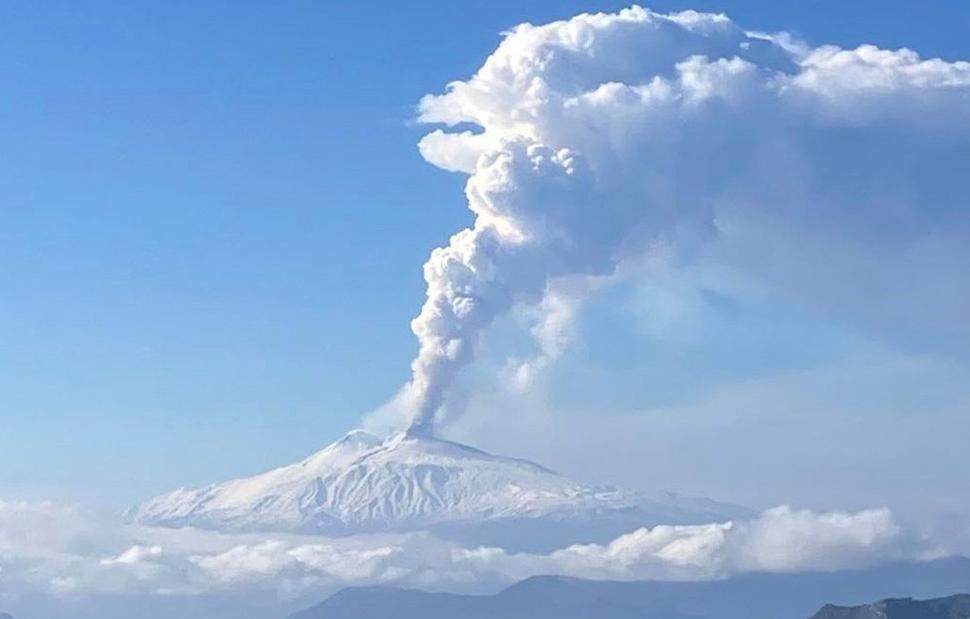 Europe's tallest and most active volcano, Mount Etna on Sicily, experienced a mild Strombolian eruption, producing dense ash plumes rising from its snow-capped summit.