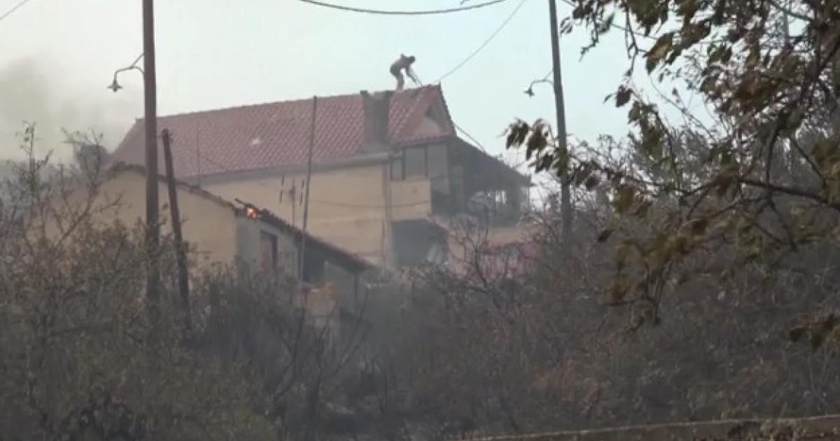 Οι εικόνες από τη Χασιά συγκλονίζουν. Σε βίντεο που μετέδωσε το MEGA, φαίνεται η μάχη ενός ανθρώπου με τις φλόγες για να καταφέρει να σώσει το σπίτι του. Ο κάτοικος ανέβηκε στη σκεπή του σπιτιού του με τις πυροσβεστικές δυνάμεις να του δίνουν μία μάνικα ώστε να προσπαθήσει να κατεβάσει το θερμικό φορτίο της σκεπής και να σβήσει η φωτιά.