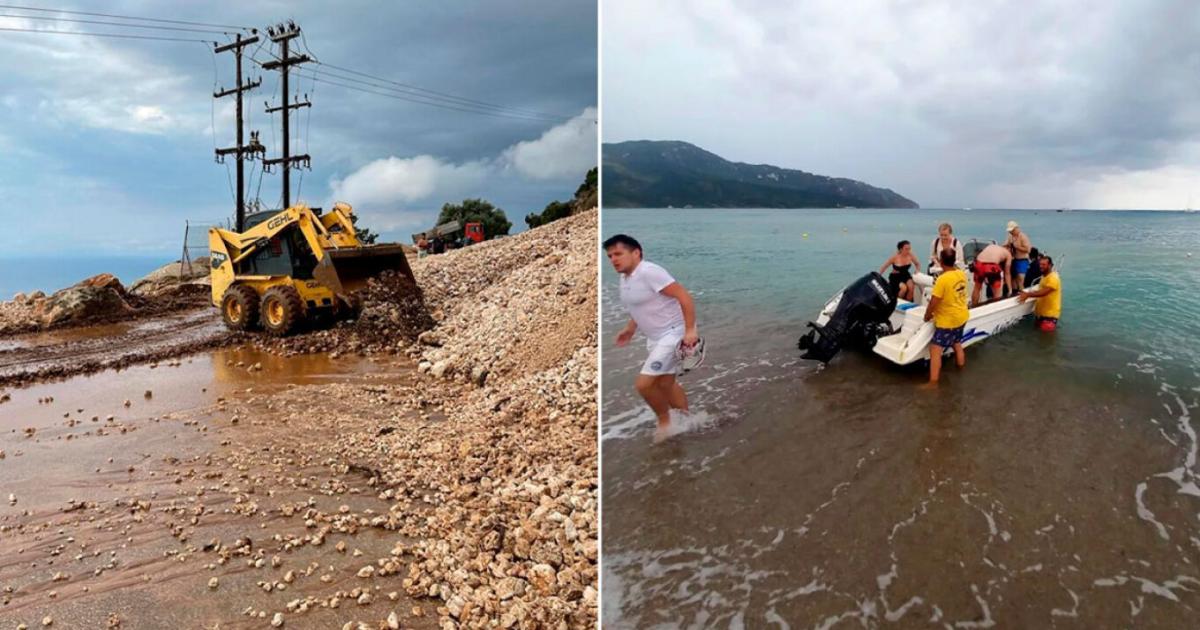 Εξαιτίας της ξαφνικής και έντονης βροχόπτωσης εγκλωβίστηκαν στην παραλία Πόρτο Τιμόνι της Κέρκυρας δέκα τουρίστες. Στο σημείο έσπευσε δύναμη της πυροσβεστικής Υπηρεσίας, σκάφος του λιμενικού και ιδιώτες προκειμένου να τους απεγκλωβίσουν. Και αυτό διότι η ανάβασή τους λόγω των έντονων φαινομένων ήταν εξαιρετικά δύσκολη. Ετσι λοιπόν οι τουρίστες απεγκλωβίστηκαν δια θαλάσσης και μεταφέρθηκαν σε ασφαλές σημείο. Ακόμη εξαιτίας της κακοκαιρίας υπήρξε διακοπή ρεύματος στην Κασσιόπη όπου εκδηλώθηκε και χαλαζόπτωση.