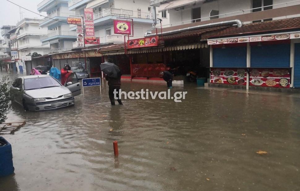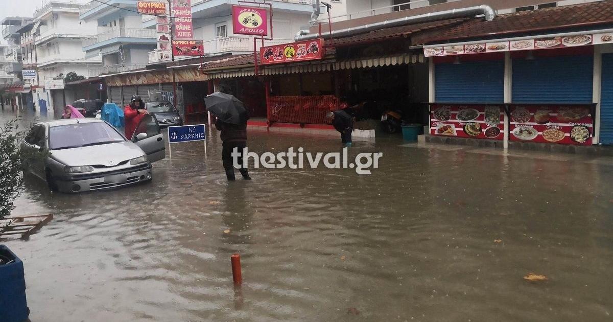 Η Κατερίνη μετατράπηκε σε λιμνοθάλασσα με το νερό να ξεπερνά το μισό μέτρο και το επαρχιακό δίκτυο της Πιερίας να κλείνει.