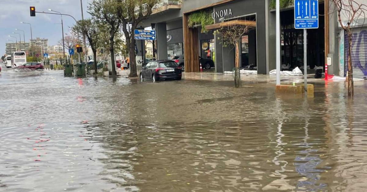 Η οδός Μοναστηρίου, από το ύψος της Λαγκαδά μέχρι την Αναγεννήσεως, έχει μετατραπεί σε ποτάμι, όπως φαίνεται και στις εικόνες του protothema.gr, με την κυκλοφορία των οχημάτων να έχει διακοπεί στο ρεύμα προς δυτικά και τους κατοίκους να προσπαθούν να καθαρίσουν μόνοι τους τα φρεάτια.
