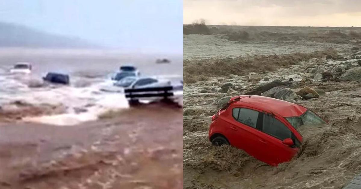 Ο όγκος του νερού που έχει πέσει στην περιοχή είναι τόσο μεγάλος που παρασύρθηκαν ακόμα και τα αυτοκίνητα που ήταν παρκαρισμένα σε κεντρικό πάρκινγκ της περιοχής.