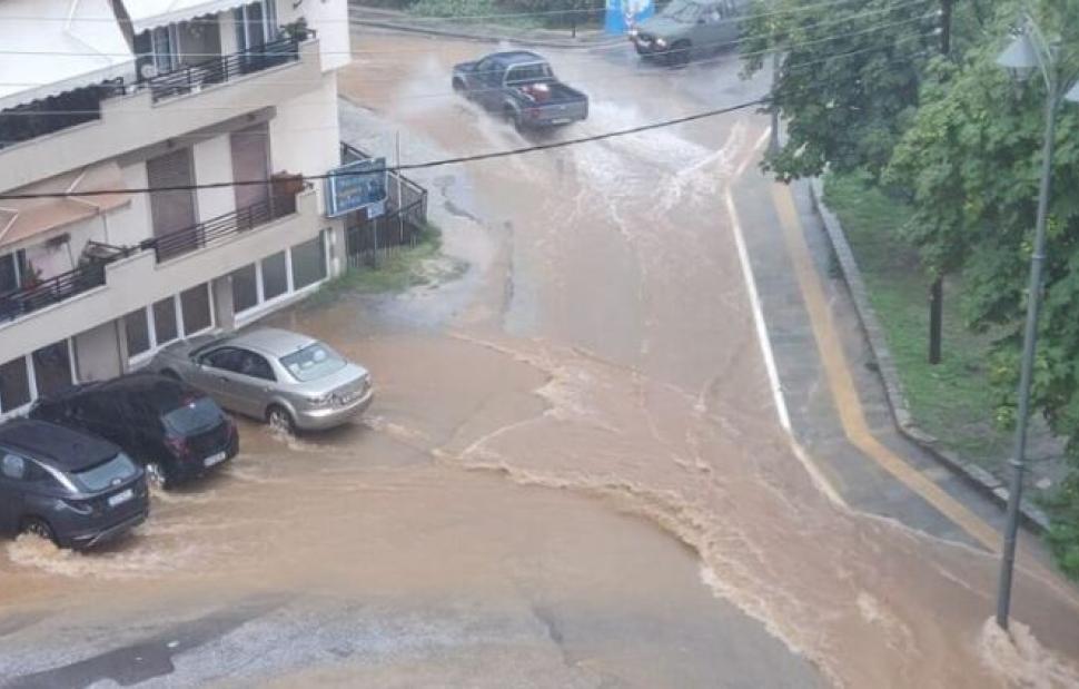 Στον Πολύγυρο «άνοιξαν» οι ουρανοί και η καταιγίδα που διήρκεσε αρκετή ώρα, μετέτρεψε σε ποτάμια τους δρόμους της πρωτεύουσας της Χαλκιδικής. Η πλατεία των Έξι Βρύσεων μετατράπηκε σε λίμνη, ενώ την ίδια ώρα σημειώθηκαν διακοπές ρεύματος σε όλη την πόλη.