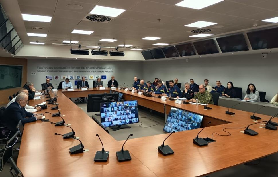 Προηγήθηκε συνεδρίαση της επιστημονικής Επιτροπής Εκτίμησης Κινδύνου. Κατά τη διάρκεια της σύσκεψης, ο υπουργός Κλιματικής Κρίσης και Πολιτικής Προστασίας, Γιάννης Κεφαλογιάννης, τόνισε την ανάγκη για αυξημένη επαγρύπνηση και πλήρη επιχειρησιακή ετοιμότητα, καθώς και για αδιάλειπτη επικοινωνία όλων των εμπλεκόμενων φορέων, των Δήμων και των Περιφερειών με το Εθνικό Συντονιστικό Κέντρο Επιχειρήσεων της Πολιτικής Προστασίας (Ε.Σ.Κ.Ε.ΔΙ.Κ.), καθ’ όλη τη διάρκεια του φαινομένου, προκειμένου να λαμβάνονται έγκαιρα τα αναγκαία μέτρα.