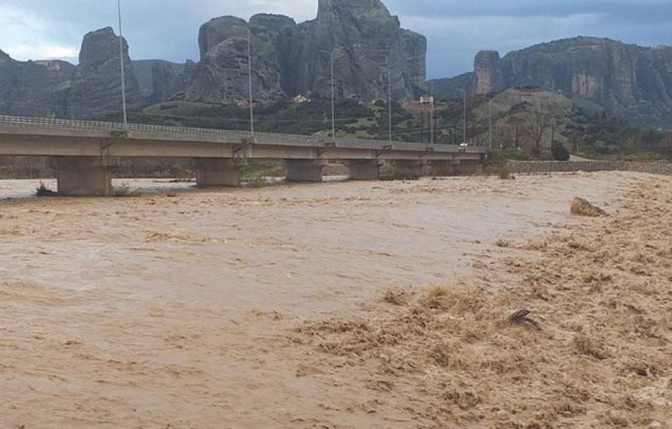 Ο Πηνειός ποταμός κατεβαίνει ορμητικός φέροντας μεγάλες ποσότητες νερού και φερτών υλικών από τα ορεινά, σύμφωνα με το trikalavoice.gr.
