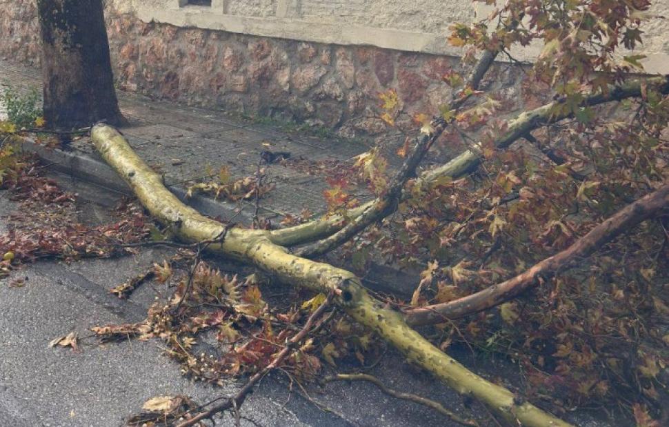 Στην οδό Κοκκινάκη έπεσε ένα ευκάλυπτος, ενώ στην οδό Ελάτης έπεσε ένα πεύκο που βρισκόταν στην αυλή ενός σπιτιού, παρασύροντας ακόμα πυλώνα ρεύματος και προκαλώντας υλικές ζημιές σε ένα αυτοκίνητο.