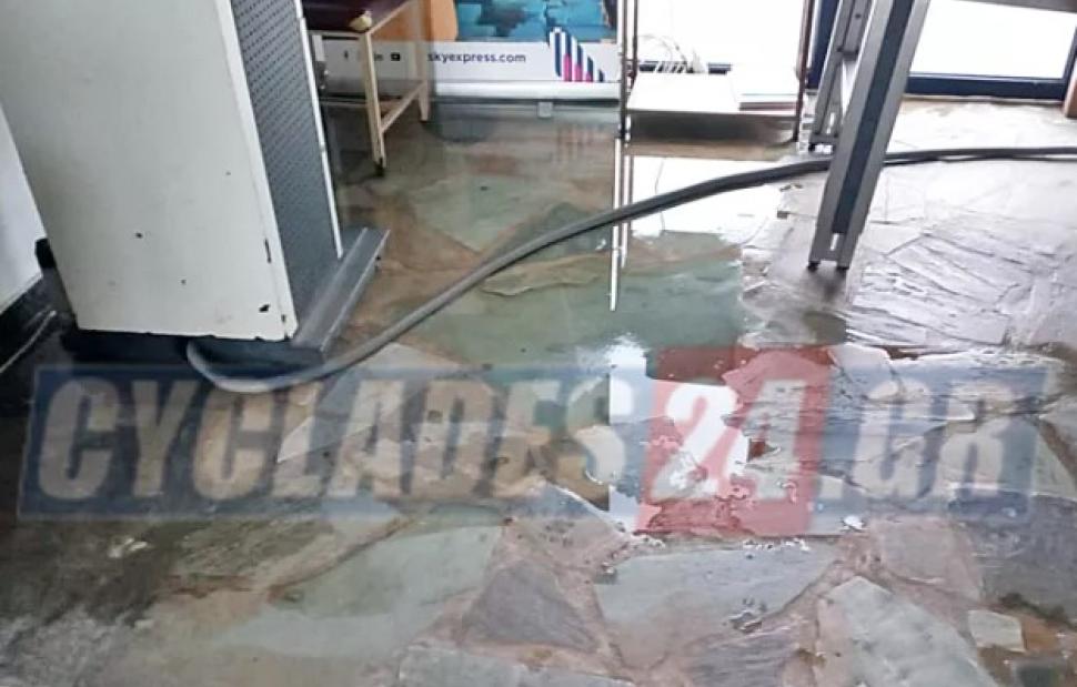 Σύμφωνα με δημοσίευμα του cyclades24.gr, οι εγκαταστάσεις του Κρατικού Αερολιμένα Νάξου «υπέφεραν» από την κακοκαιρία, με αποτέλεσμα να πλημμυρίσει ο χώρος ελέγχου των χειραποσκευών.