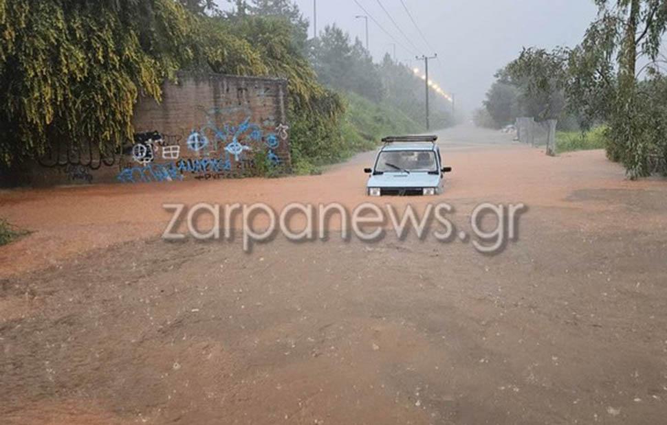 Οι δρόμοι έγιναν ποτάμια, τα αυτοκίνητα κινούνται με δυσκολία, ενώ σε πολλές περιοχές το ύψος του νερού είναι μεγάλο.