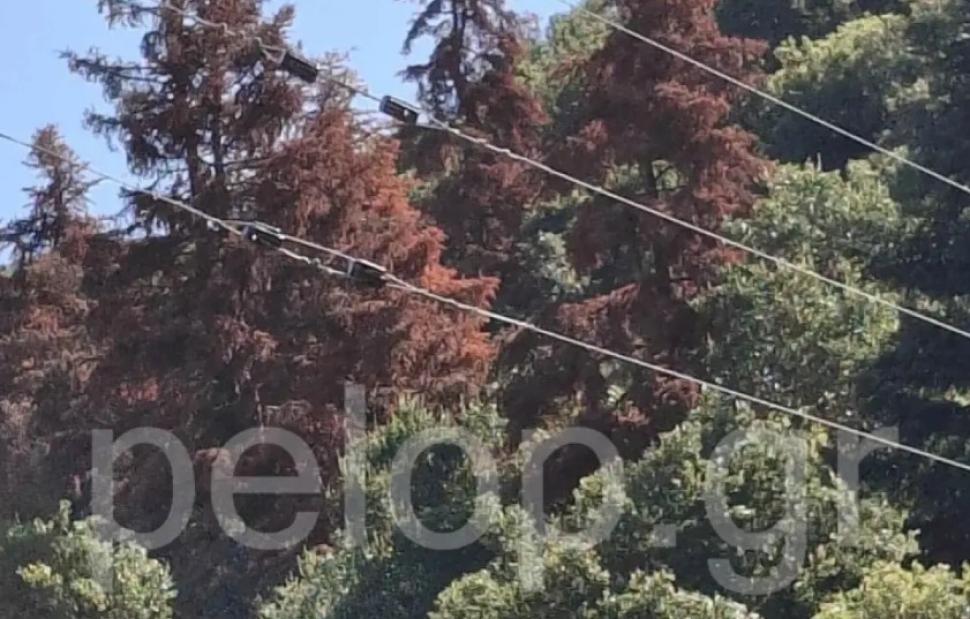 Το αποτέλεσμα είναι άκρως ανησυχητικό: τα έλατα έχουν πάρει χάλκινο χρώμα, σημάδι αργού θανάτου. Καταπονημένα και εξασθενημένα, τα δέντρα χάνουν την αντοχή τους και γίνονται ευάλωτα, με το φαινόμενο να παίρνει επικίνδυνες διαστάσεις.