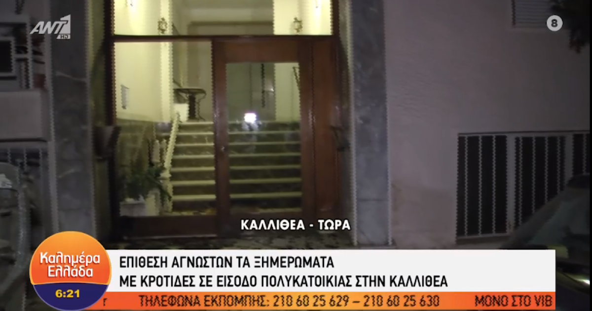 Κροτίδες έριξαν άγνωστοι στην είσοδο πολυκατοικίας στην Καλλιθέα.