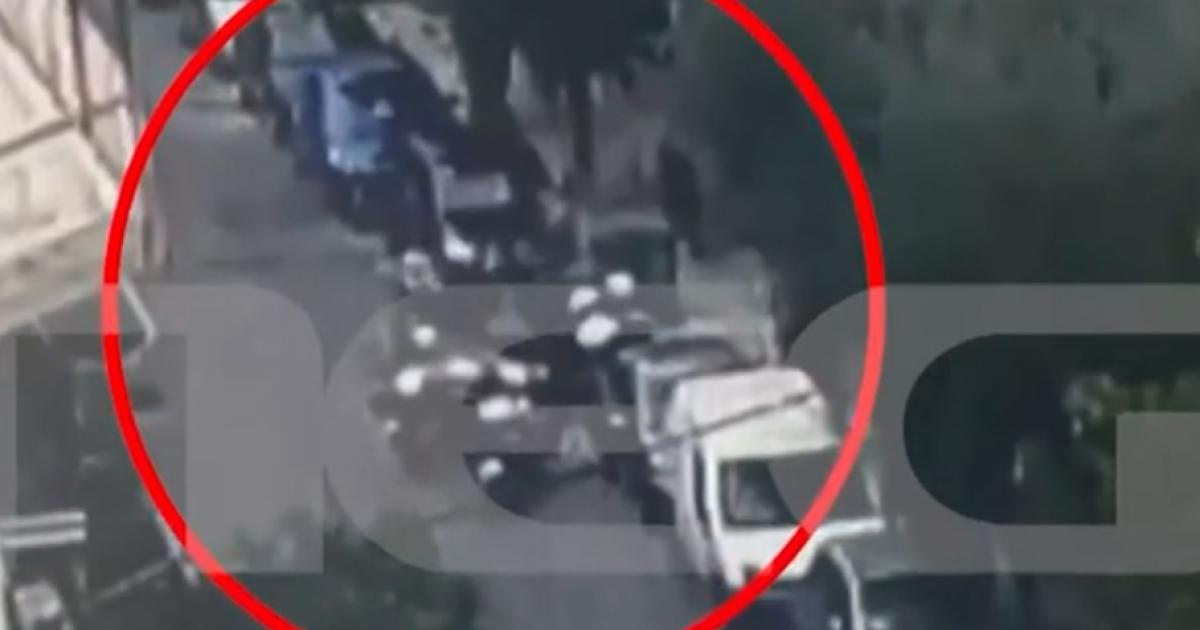 Ένοικος σπιτιού του πέμπτου ορόφου τους κατάλαβε και άρχισε να καλεί σε βοήθεια. Όπως φαίνεται στο βίντεο του Mega, 3 μοτοσικλέτες της ομάδας ΔΙ.ΑΣ έσπευσαν στο σημείο και ξεκίνησε η καταδίωξη.