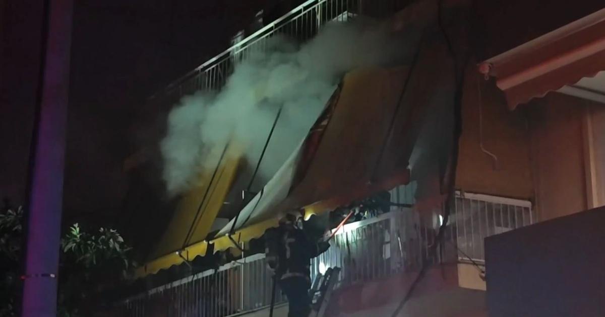 Η πυρκαγιά επεκτάθηκε και στο μπαλκόνι, προκαλώντας ζημιές στις τέντες και στην εξωτερική μονάδα του κλιματιστικού. Βίντεο ντοκουμέντο που έδωσε στη δημοσιότητα η ΕΡΤ καταγράφει τις φλόγες να έχουν τυλίξει τον εξωτερικό χώρο του σπιτιού.