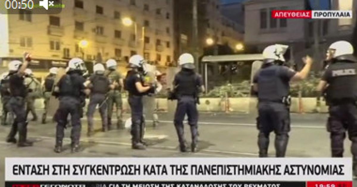 Επεισόδια σε νέα πορεία διαμαρτυρίας κατά της πανεπιστημιακής αστυνομίας στο κέντρο της Αθήνας μετά τις σκηνές χάους στη Θεσσαλονίκη, τα ξημερώματα του Σαββάτου.