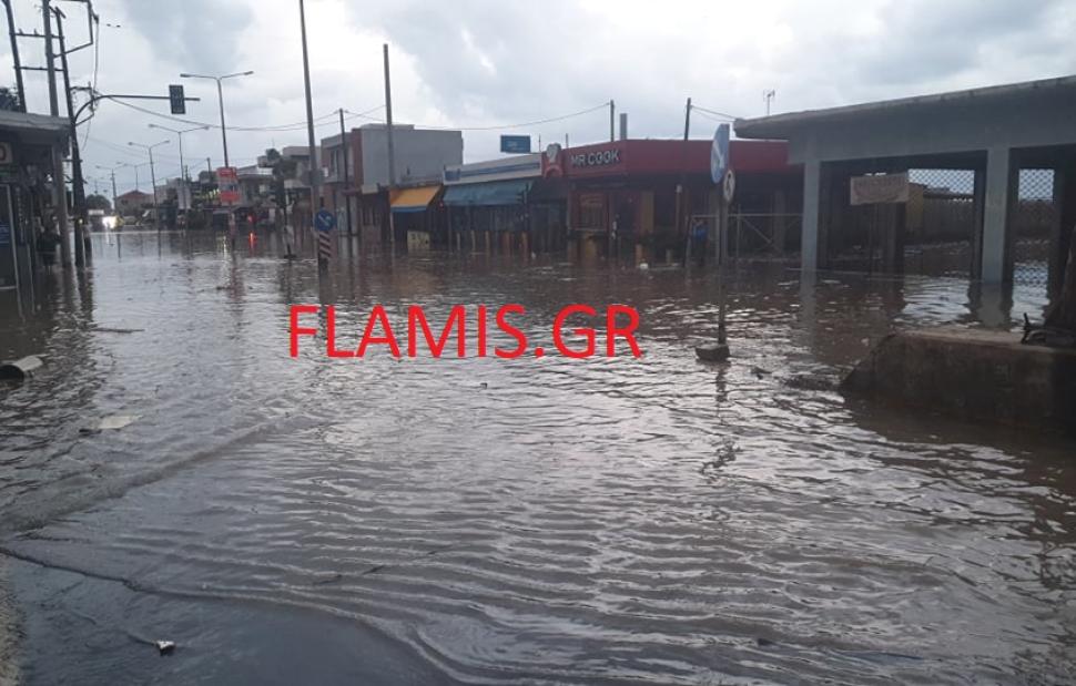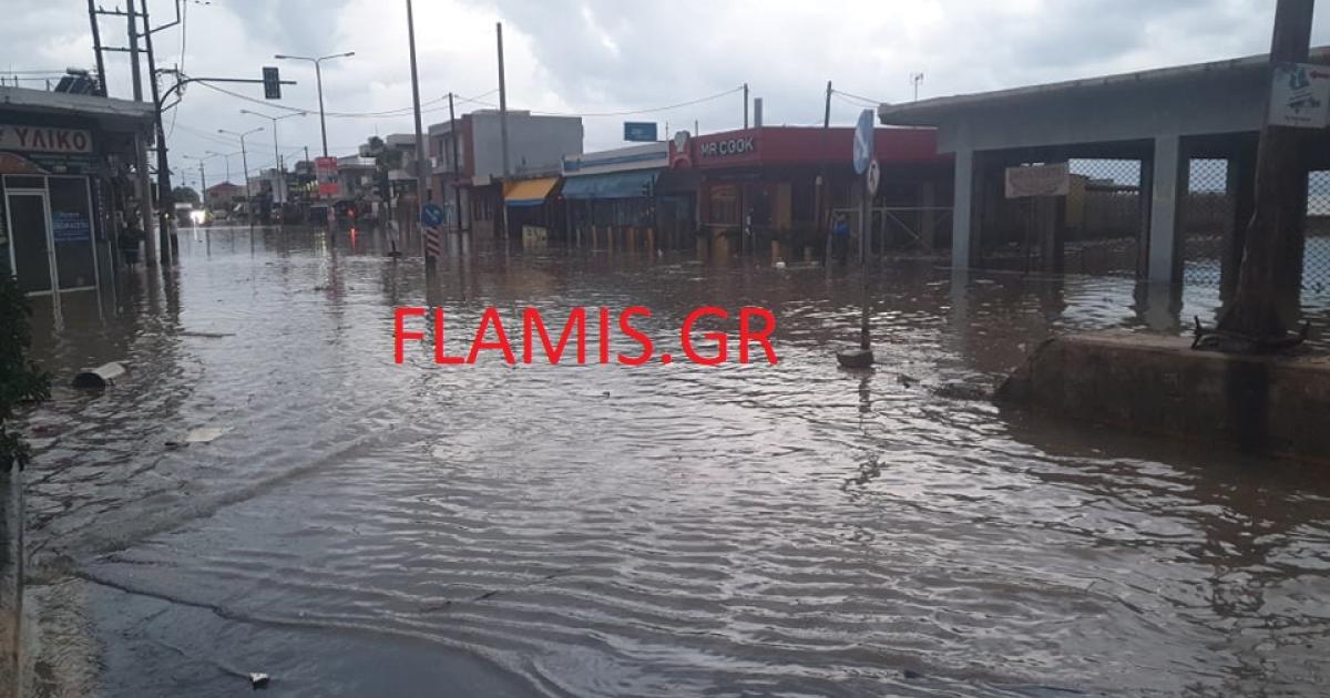 Επί ποδός βρίσκονται συνεργεία του Δήμου, τα οποία προσπαθούν να ανοίξουν αυλάκια ώστε να απομακρυνθεί το νερό.