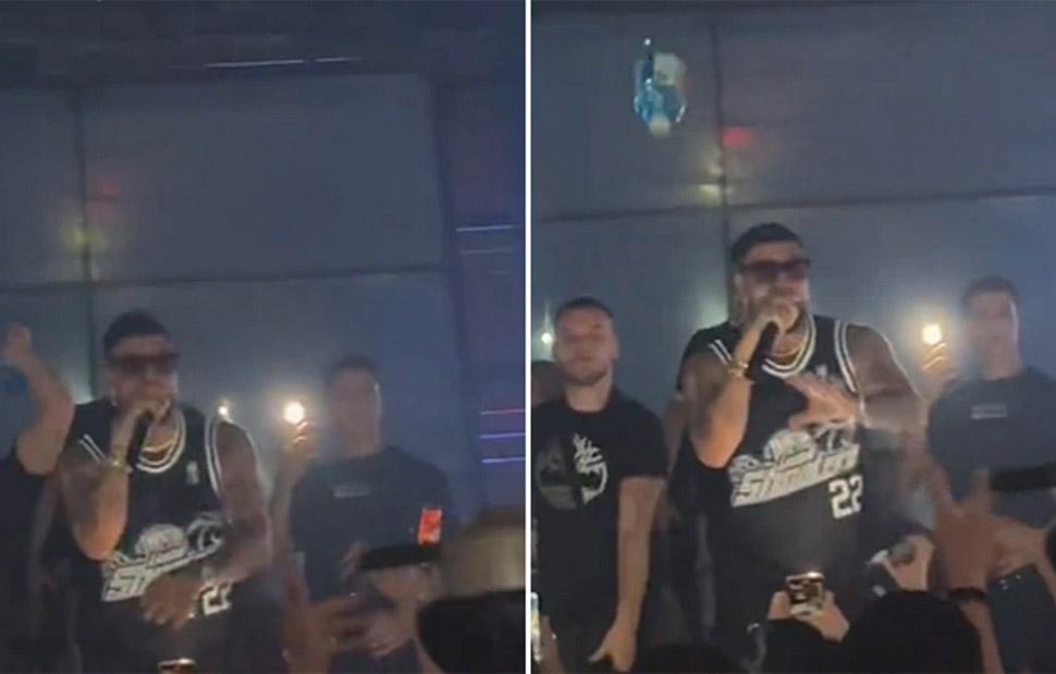 Από τη σκηνή του κάνουν νόημα να σταματήσει, όμως ένας άλλος που βρίσκεται εκεί, αρπάζει ένα μπουκαλάκι με αντισηπτικό και το πετάει προς τον κόσμο. Η συνέχεια, μετά είναι γνωστή από χθες. Κατέβηκε κάτω, άρχισε ο καυγάς και το νυχτερινό μαγαζί θύμισε πεδίο μάχης…