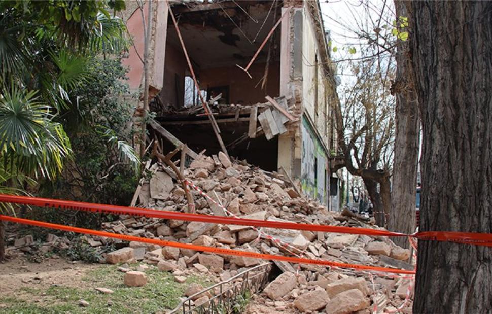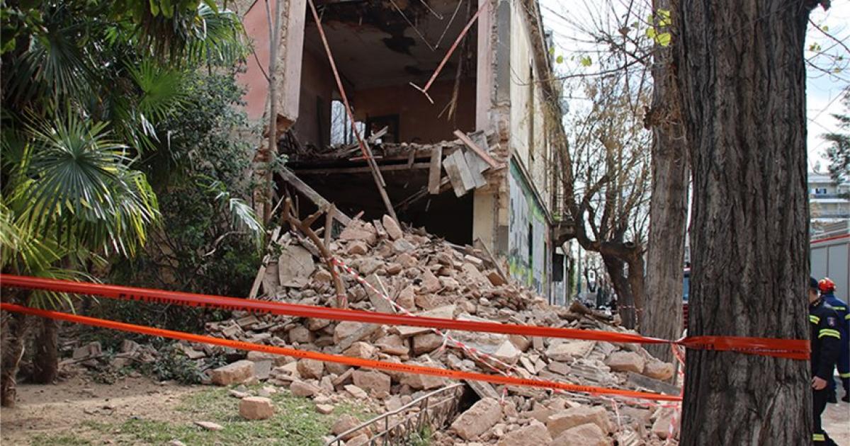 Μέρος κτιρίου κατέρρευσε στη συμβολή των οδών 28ης Οκτωβρίου (Πατησίων) και Σαρανταπόρου στα Άνω Πατήσια.