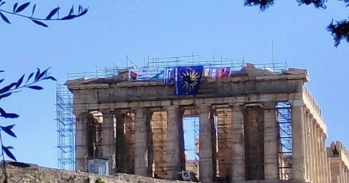 Κατέβηκε λίγο πριν από τις 20:00, έπειτα από σχεδόν 8 ώρες(!), ο άνδρας που είχε σκαρφαλώσει στην κορυφή του Παρθενώνα κρατώντας πανό και σημαιάκια, τα οποία επίσης κατέβηκαν.