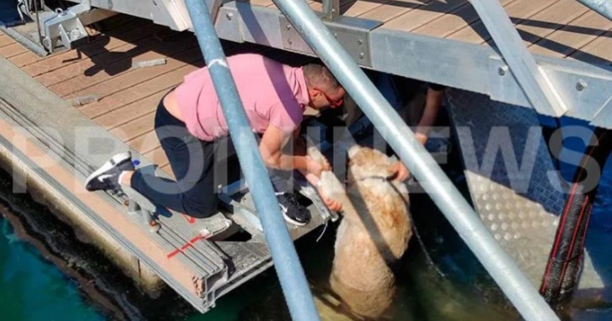 Στην επιχείρηση διάσωσης του σκύλου συμμετείχε και προσωπικό του Λιμενικού Σώματος.