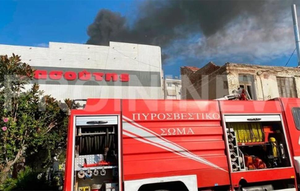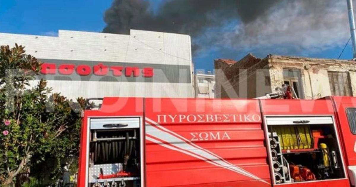 Πυκνοί καπνοί έχουν καλύψει την ευρύτερη περιοχή. Σύμφωνα με πληροφορίες η φωτιά ξεκίνησε από την οροφή του κτιρίου, όπου στεγάζεται το σούπερ μάρκετ «Μασούτης».