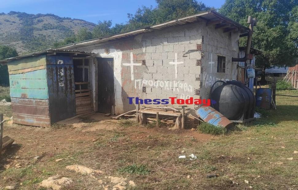 Στην καλύβα υπάρχουν εικόνες με το ζευγάρι αλλά και ένας κάλυκας από κυνηγετικό όπλο, σύμφωνα με το thesstoday.
