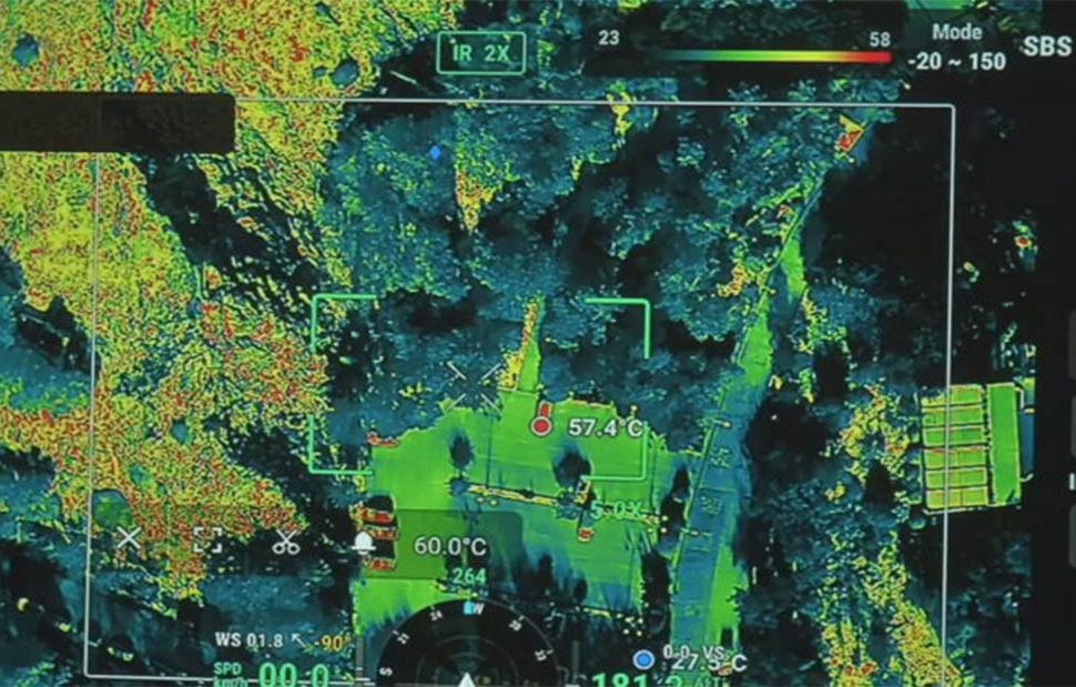Στις θερμικές λήψεις αποτυπώνονται καθαρά οι θερμοκρασίες του εδάφους, με το σκούρο μπλε να αντιστοιχεί σε περιοχές με 30 έως 35 βαθμούς Κελσίου, και το πράσινο να δείχνει θερμοκρασίες που φτάνουν τους 40°C. Παρά το γεγονός ότι ήταν ακόμα νωρίς το πρωί, η αισθητή θερμοκρασία σε ορισμένα σημεία φάνηκε να αγγίζει τους 53 βαθμούς, όπως ανέφερε χαρακτηριστικά η δημοσιογραφική ομάδα της εκπομπής “Συνδέσεις”.
